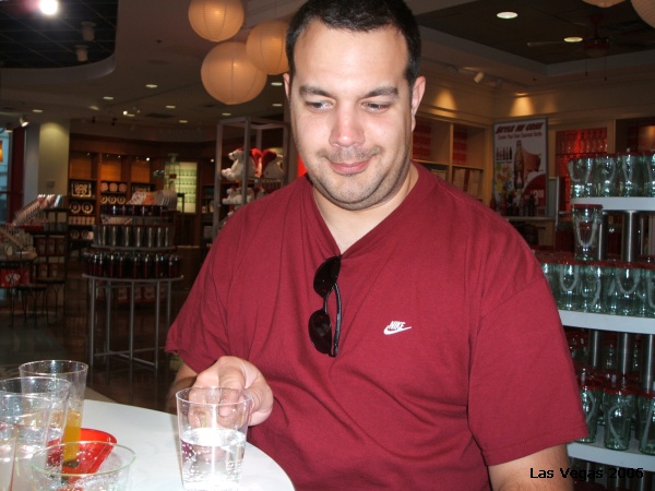 After a few beers each, lunch and three shots of Tequila, we decided to enjoy our newly started vacation and take a walk on Las Vegas Blvd. Nothing really worthwhile to write about other then stopping at the M&M and Coke-Cola store, which are both very adorable. One of the neat things about Coke-Cola is that you can order “Tastes from around the World” which is a sampling of 24 flavors of Coke-Cola products from different parts of the world. Most were good, some were okay, a few were confusing and one unmentionable.