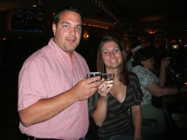 Both wanting to get changed out of our clothes from our hot day in the sun, we make a quick pit stop in our room, only 30 floors up, and then head out for some cocktails. Now if you know us well enough, you are very familiar with the fact that we love to people watch. Anywhere and everywhere, whenever we can we love the art of watching people! So, we decided to get a cocktail “to go” and take a seat in Mandalay Place and observe. After a good (not really sure how many) drinks each, we call it a night, but only after a shot of Tequila (for Matt) at the Luxor! To You Buddy!
