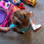 My “Big Girl In Training” has stepped one step closer to Big Girl status… her hair is long enough for pigtails!