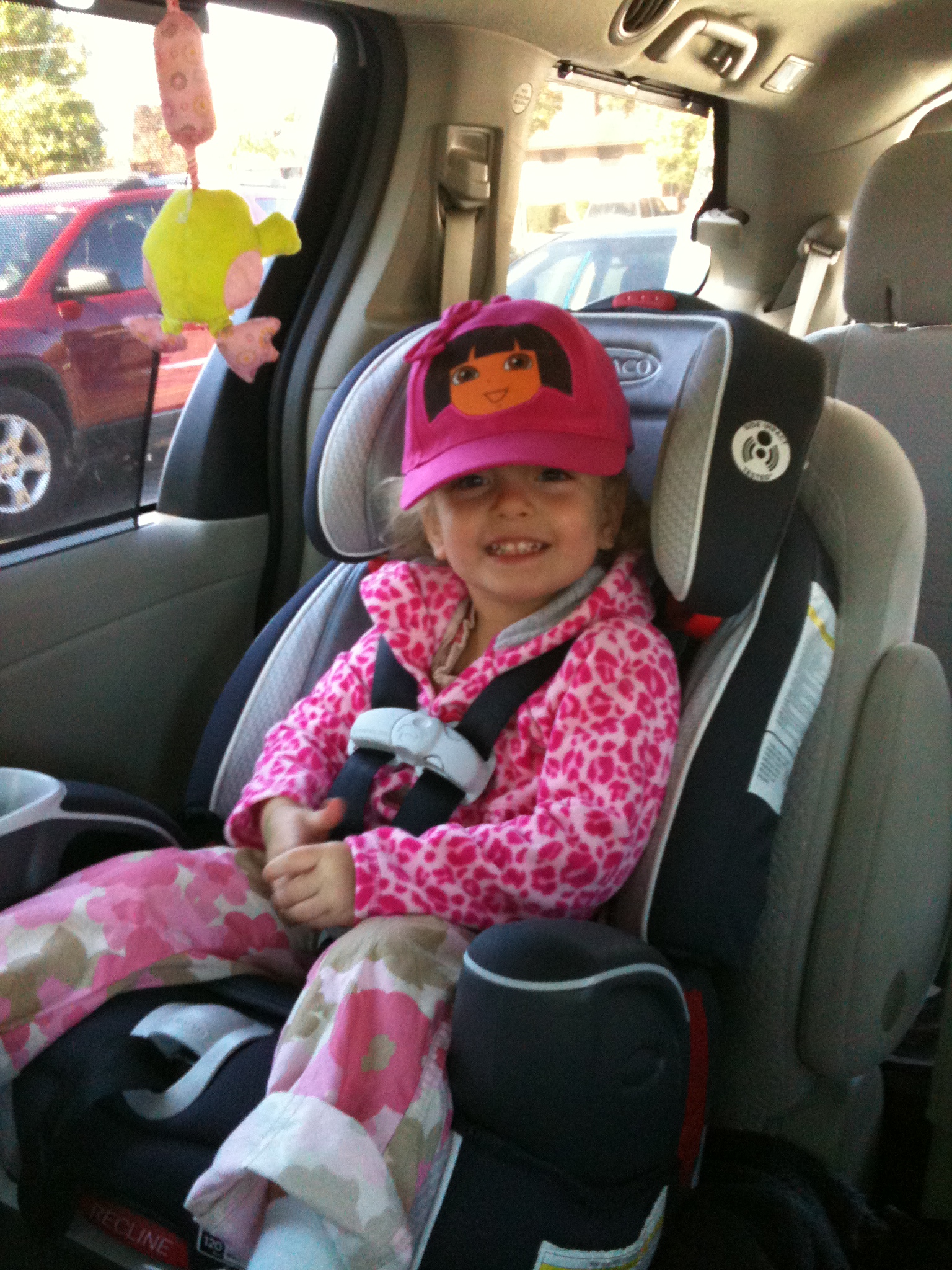 Earlier this week while Ella was at pre-school, Cooper and I went to the Dollar Store. Low and behold there sitting in the clearance pile was a Dora baseball hat. Cooper had to get this for his big sister. I don’t think she has taken that hat off since! In fact, tomorrow is Sunday and we are going to Sunday School and I hid the hat in a bag of clothing we are taking with us for later in the day! If she saw the hat she would want to wear it and although I have explained that we do not wear hats to Sunday School, except on Easter, she would still fight me… comon’ she’s a two and a half year old…