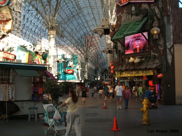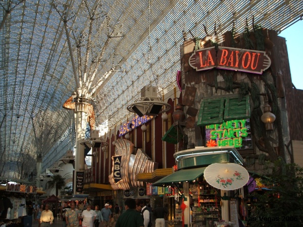 Since we had the car and were saving so much money on cab fare, (he he he) we decided to head to Fremont Street, aka Old Las Vegas. Megan had never experienced Fremont Street, and boy is it different than the part of Las Vegas most of us are used to – the people you see there are a little less flashy, but still a fun area to experience. The whole street is shut down to traffic, and you walk right in off the street and there is a slot machine right there!