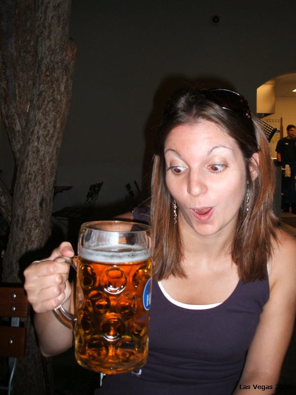 Hofbrauhaus House, what is that you may ask, good rather authentic (for in America) German food, atmosphere, and entertainment. As we enter the Hofbrauhaus House, we are greeted by friendly little hostess’s dressed in German attire, so fun! We are asked if we would like to dine in the Beer Hall or in the Beer Garden. The Beer Hall was rather packed, but looked to be a lot of fun! A live band plays while you dine and enjoy the entertainment of the live music and the people around you for you share a table with others. The Beer Garden is a little less noisy and a little more intimate. While you can still hear the music from the Hall, you can enjoy each other’s company and have a table to yourselves. Since it was evening we were able to enjoy the trees within the Beer Garden that were lit by small lights. Opening our menu we have such a variety of German food to choose from, nothing American here! First came the choice of what beer to have along with what size! We both went with the liter of beer – BIG VERY BIG! We then ordered soft pretzels with mustard, which oddly enough we both thought were very good, maybe we were just starved and used to not so great food, but we loved the pretzels. Josh ordered Schnitzel Wiener Art while Megan having a hard time choosing because she is not familiar with this type of food went with Jagerschnitzel, a dish that most people end up getting when they don’t know what to get (she fit in perfectly).