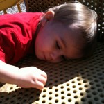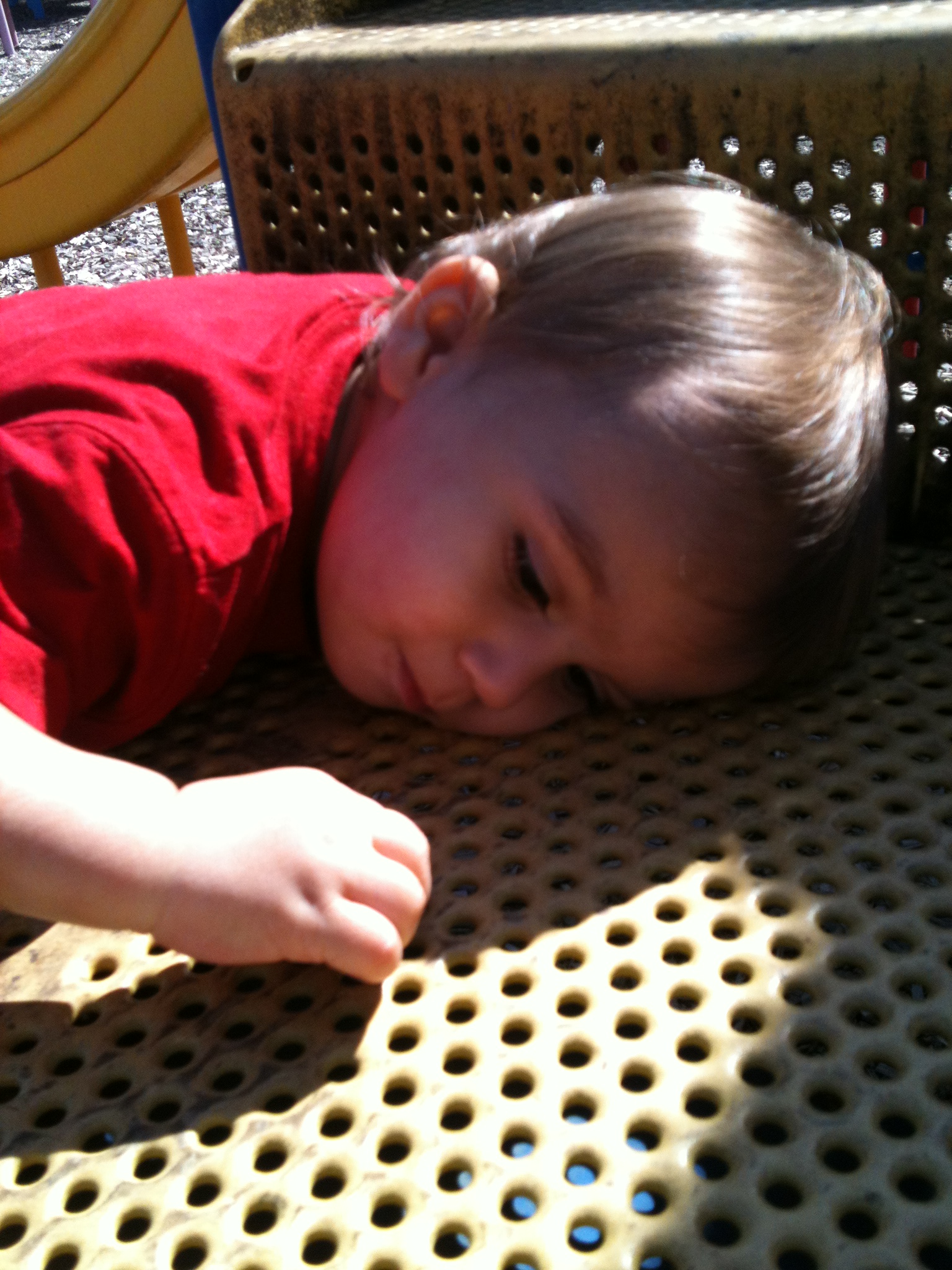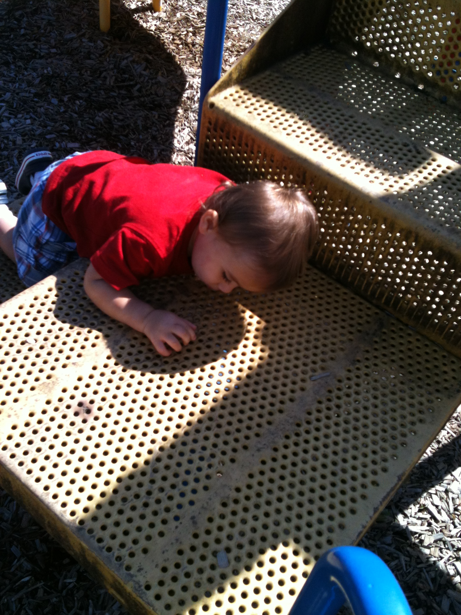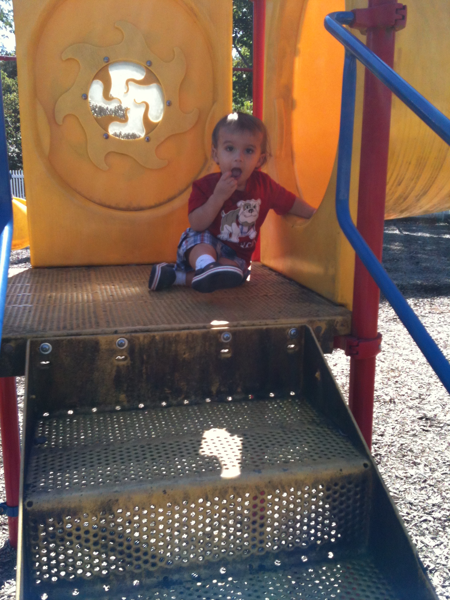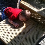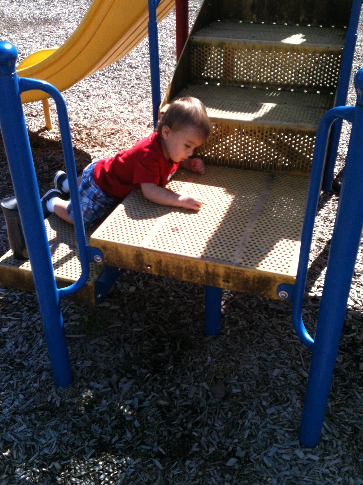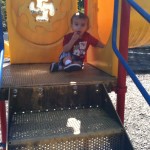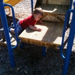 We love trips to the playground. Coop likes spending his time putting wood chips through the holes in the playground equipment!