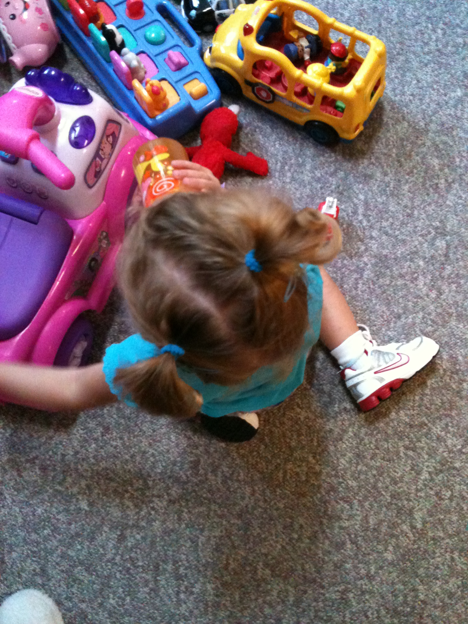 My “Big Girl In Training” has stepped one step closer to Big Girl status… her hair is long enough for pigtails!