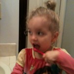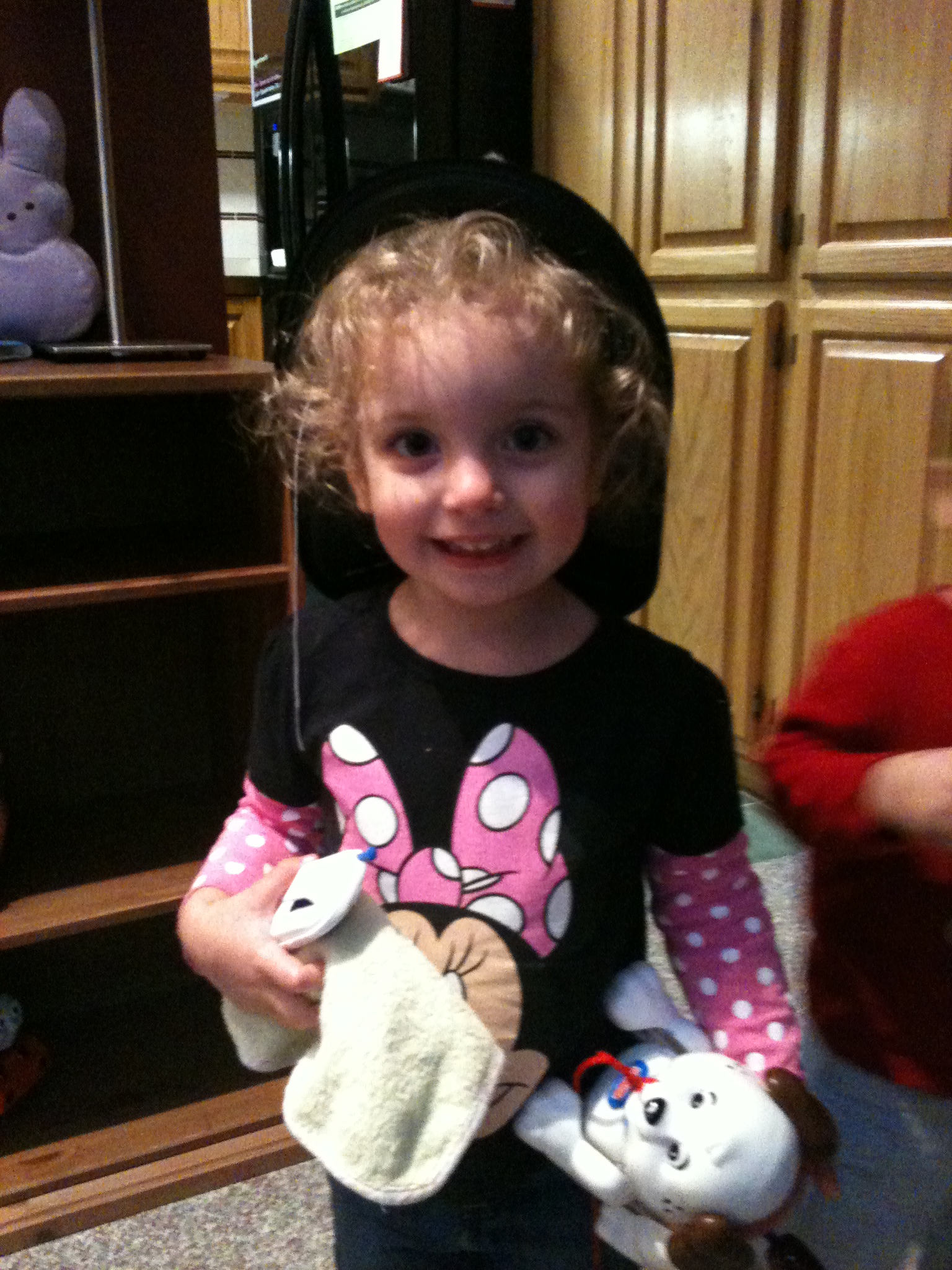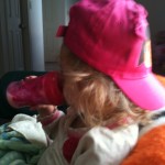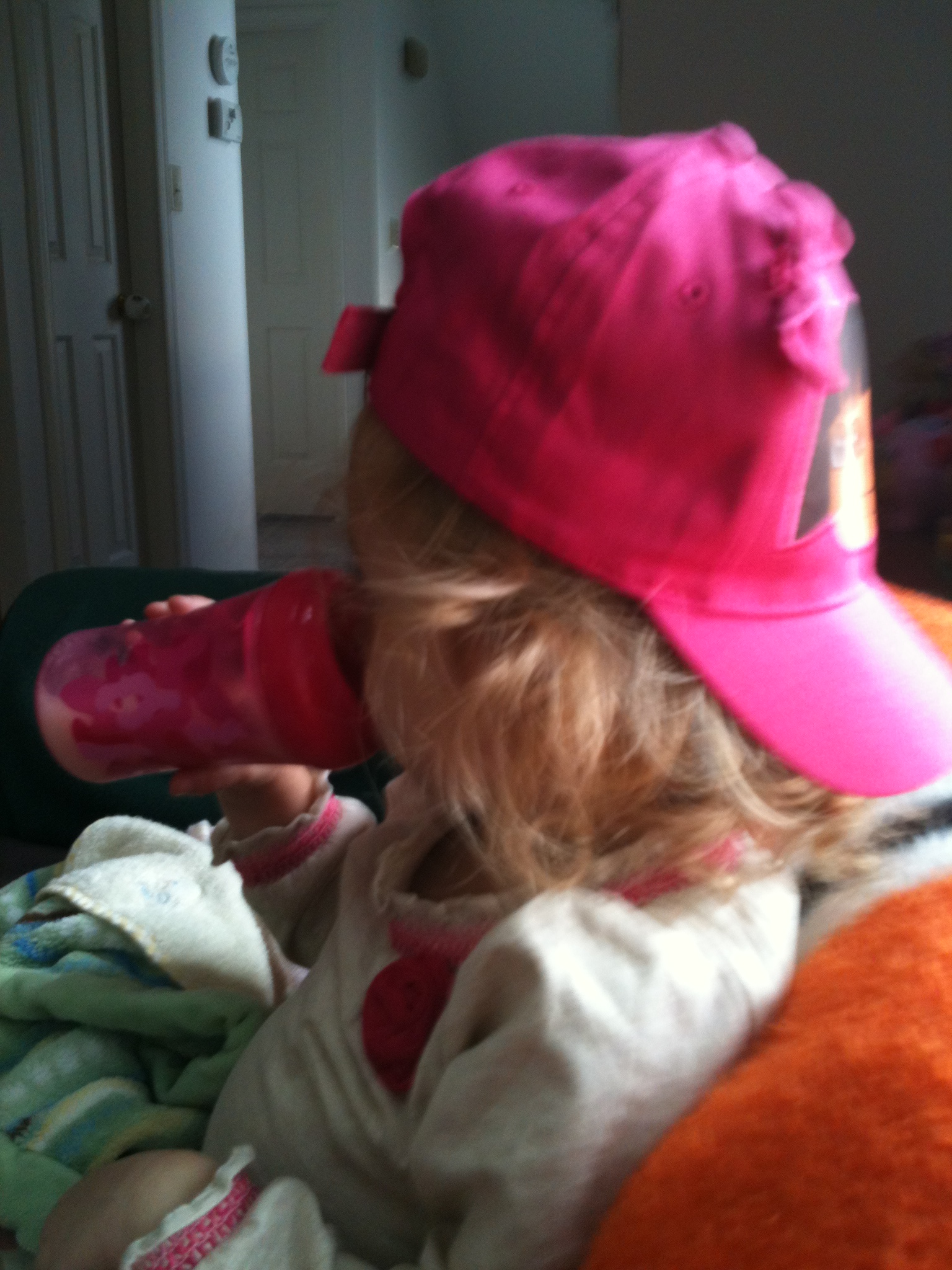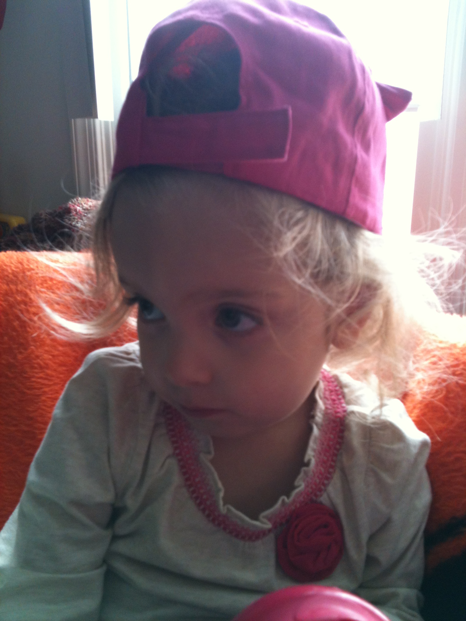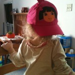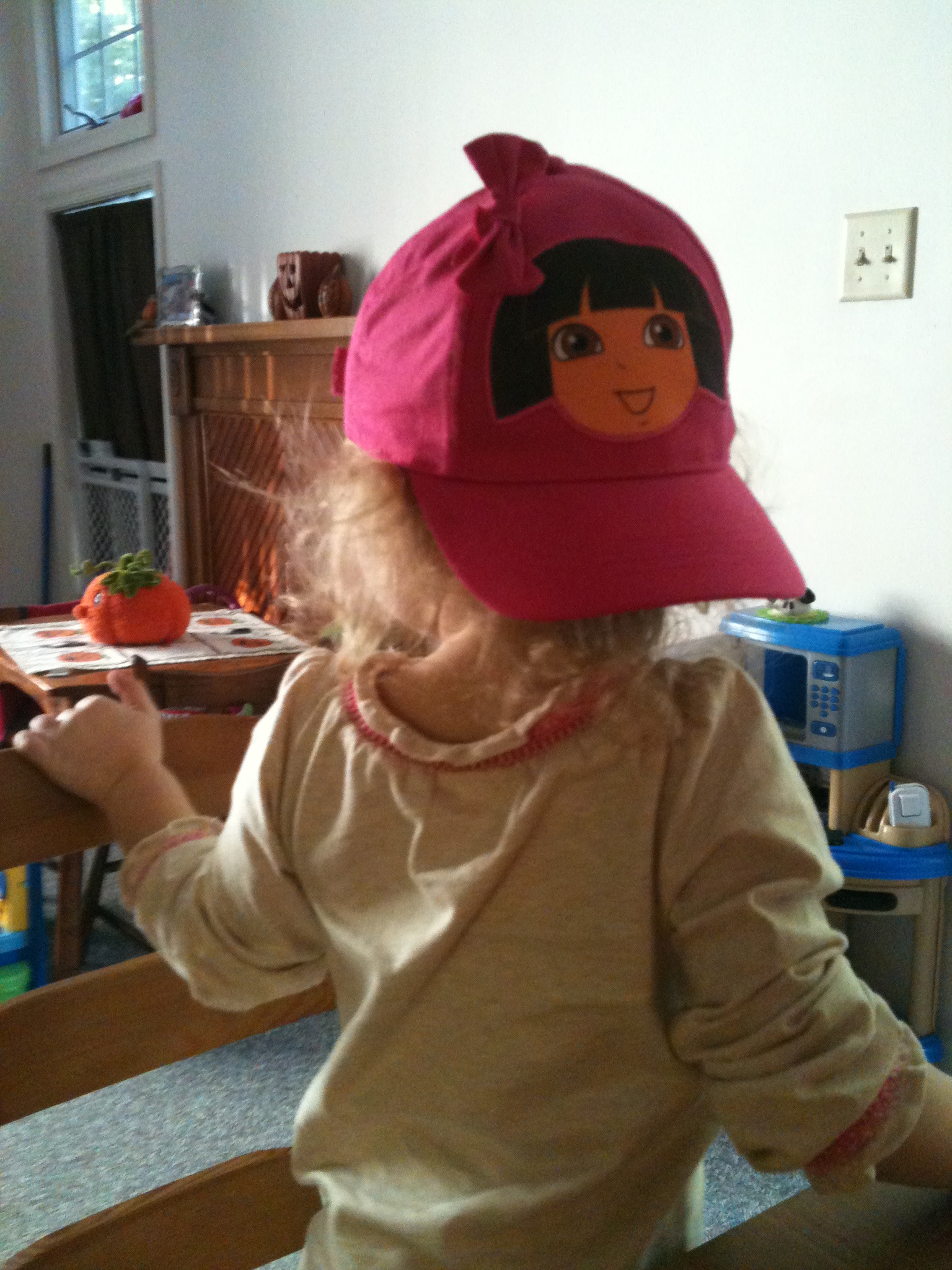 Earlier this week while Ella was at pre-school, Cooper and I went to the Dollar Store. Low and behold there sitting in the clearance pile was a Dora baseball hat. Cooper had to get this for his big sister. I don’t think she has taken that hat off since! In fact, tomorrow is Sunday and we are going to Sunday School and I hid the hat in a bag of clothing we are taking with us for later in the day! If she saw the hat she would want to wear it and although I have explained that we do not wear hats to Sunday School, except on Easter, she would still fight me… comon’ she’s a two and a half year old…