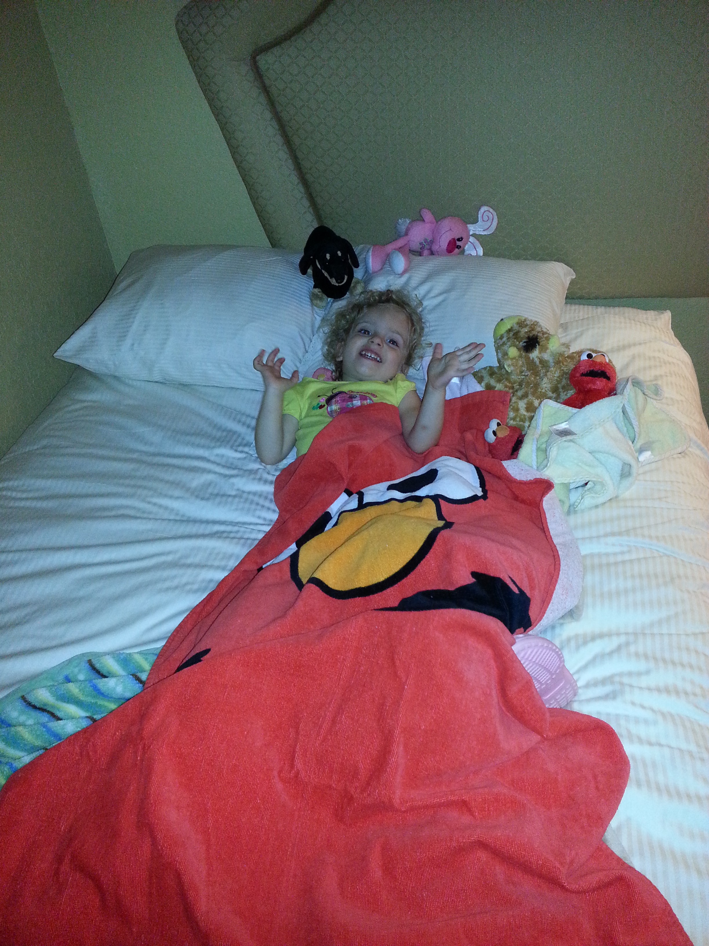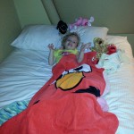 Ella’s first nap in her big girl bed. Screamed, yelled, refused to lay on the bed. Lay on the floor where her crib was and wanted to nap there. After we both attempted to successfully get her to nap/rest we left her to scream it out. 30 minutes later…. quiet! Who knows where she’s at but its quiet!