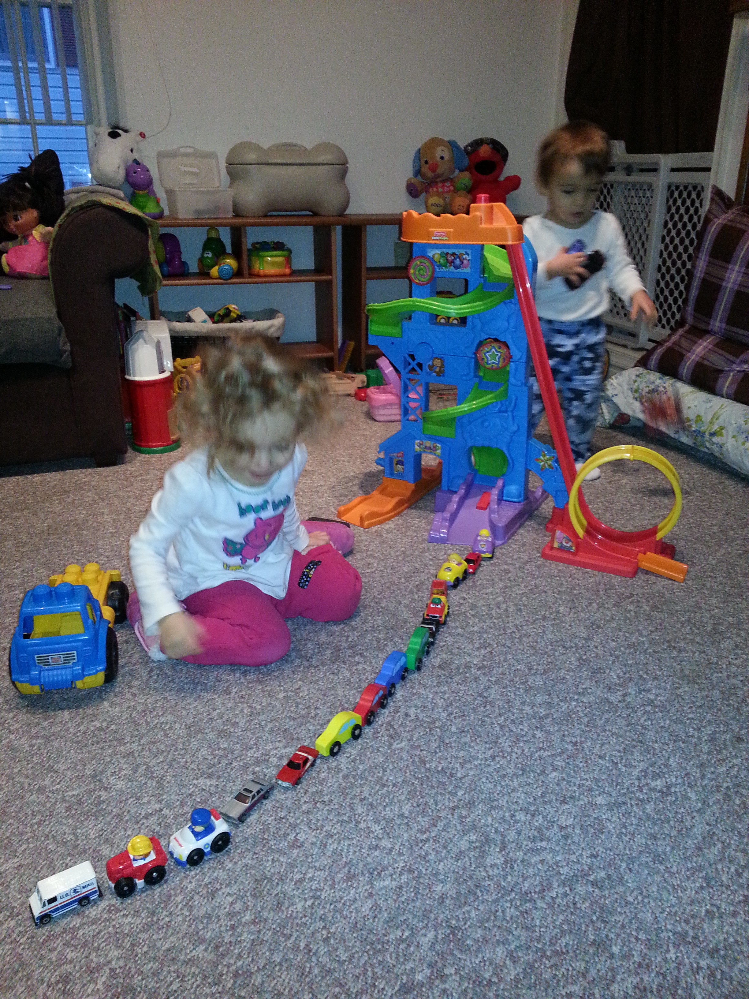 We created a marching band. Ella is playing the drums. I’m playing the trumpet and Cooper is on the tuba. So cute watching them both march and play their imaginary instruments!
